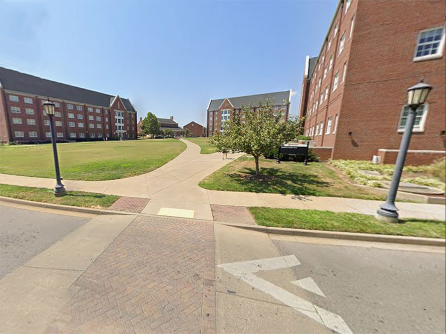 In front of the housing quad.